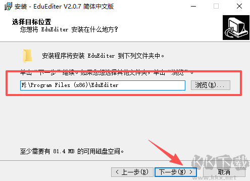 2、指定程序的存放路徑,然后繼續(xù)下一步操作。