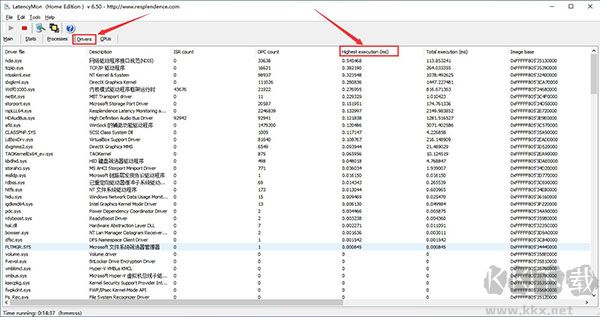 2、通過按最高執(zhí)行時間排序,能快速識別引發(fā)系統(tǒng)延遲的可疑驅(qū)動模塊。