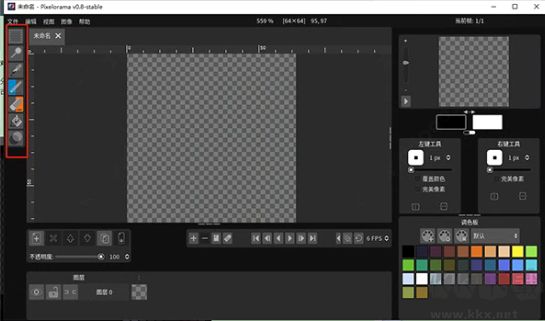 提供鉛筆、橡皮、填充桶、提亮/壓暗、顏色取樣器和矩形選取工具,并可將不同工??具分別指定給鼠標(biāo)左鍵與右鍵。