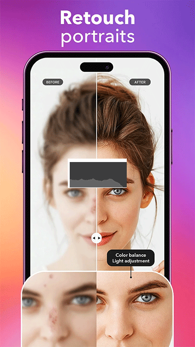體驗“美化”功能,美化您的人像照片。這個驚人的功能毫不費力地增強了您的面部特征,以前所未有的方式展現(xiàn)您的自然美。它會自動識別自拍或合影中的人臉,并一鍵增強面部細節(jié)。