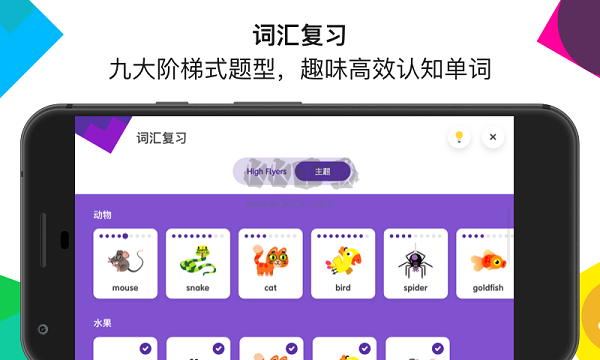 電腦手機同步進度,支持自定義生詞本,背詞闖關(guān)賺豆換禮品;