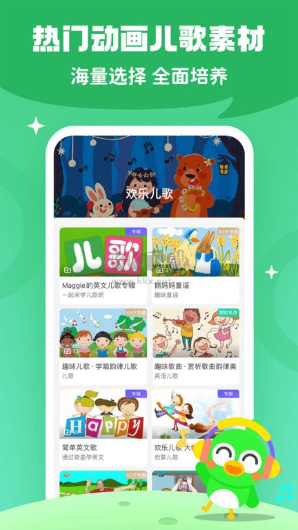 1.素材豐富:歐美國(guó)家流行的兒童動(dòng)畫、各類型兒童繪本、時(shí)尚英文歌,題材豐富的視頻素材,應(yīng)有盡有!