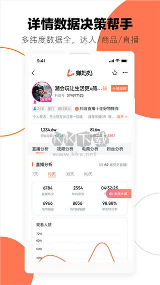 1、抖音直播數(shù)據(jù)實時全面分析功能;