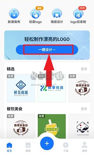 用戶在本站下載并打開軟件之后,可以進(jìn)入到首頁,點(diǎn)擊“一鍵設(shè)計(jì)”。