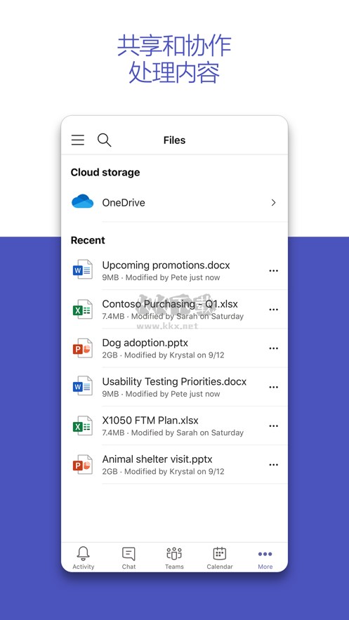 使用 Word、PowerPoint 和 Excel 這樣的應(yīng)用,一起實(shí)時地輕松查找、共享和編輯文件。