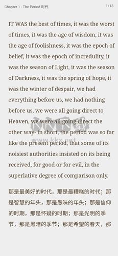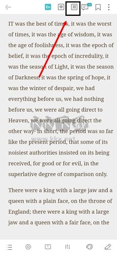 然后上下邊框出來(lái)菜單,我們點(diǎn)擊菜單上的雙字,就能享受雙語(yǔ)閱讀了。
