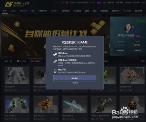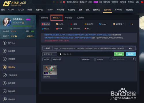 綁定steam成功后,去綁定下steam的交易報價鏈接(即URL)這個是用來識別您的steam和C5進行交易用的哦。在我的背包-飾品存入 點擊紅色字。