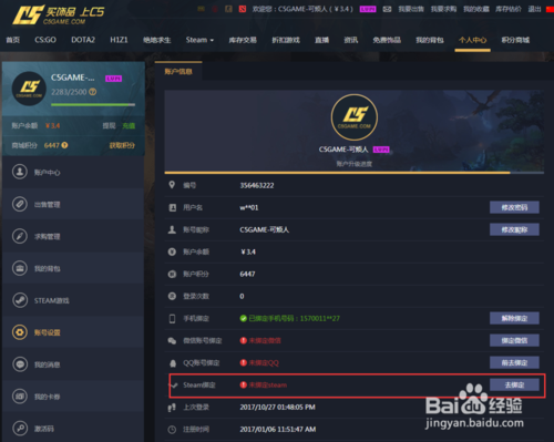 跳轉(zhuǎn)到個人中心-賬號設(shè)置進行綁定steam。