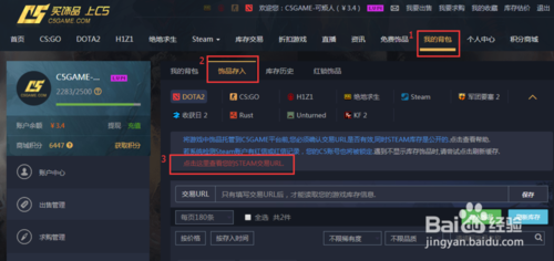 下面是公開steam庫存設(shè)置,這個是為了方便C5game的系統(tǒng)識別您的庫存。我的背包,飾品存入界面點擊紅字。