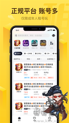 2、里面提供了優(yōu)質(zhì)游戲賬號(hào)租賃服務(wù),不僅可以讓你來租號(hào),也是可以讓你出售賬號(hào)。