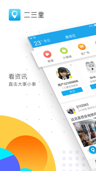 二三里APP是一款聚合優(yōu)質(zhì)視頻和圖文資訊的內(nèi)容分發(fā)平臺(tái)。以用戶位置為原點(diǎn),為用戶提供最真實(shí)最有趣的新聞資訊。覆蓋身邊千萬(wàn)精彩資訊,吸睛的新鮮好內(nèi)容應(yīng)有盡有,提供包括視頻、小視頻、圖文等不同形式的豐富內(nèi)容,以及評(píng)論、分享等有趣互動(dòng)方式,在這里,每個(gè)人都是發(fā)布記錄生活,發(fā)布所見(jiàn)所聞。一切就在二三里APP,心動(dòng)的朋友們快來(lái)下載喲!