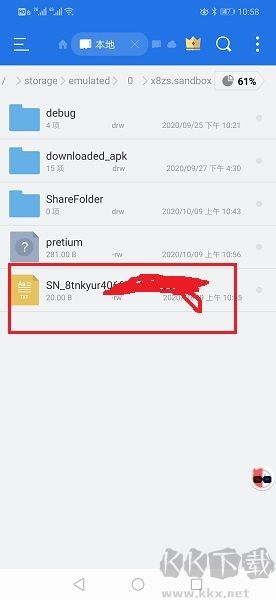 使用ES文件管理器,或類似的文件工具,進(jìn)入手機(jī)的sd卡目錄,查看SN_XXXXX.txt的文件,文件里面那一串字符就是SN碼,復(fù)制出來,去上圖的界面使用SN碼重新激活。