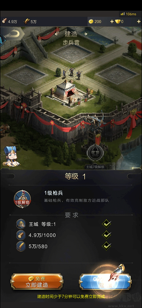 5、在建造主體建筑時(shí),加速道具重點(diǎn)用在王城建造,兵營(yíng)升級(jí)上,不要無(wú)謂的浪費(fèi)在其他建筑上。