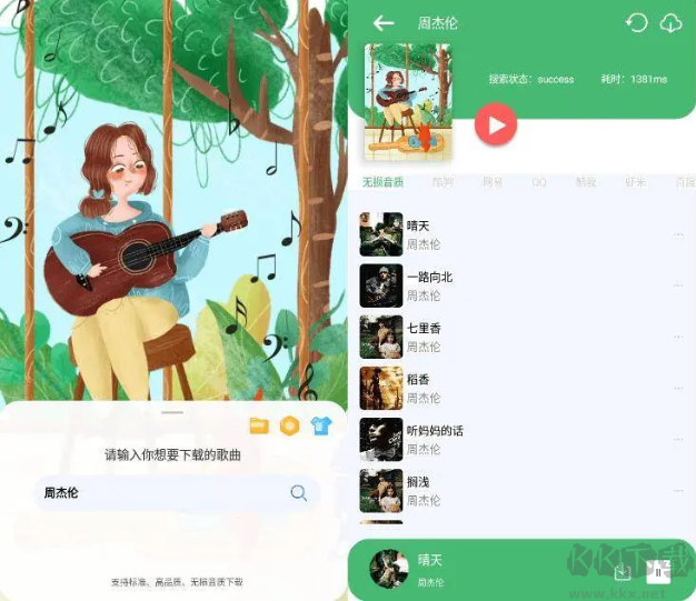 聽(tīng)·下app,安卓音樂(lè)下載應(yīng)用,聚合各大音樂(lè)平臺(tái)網(wǎng)站搜索接口,免費(fèi)在線(xiàn)試聽(tīng)及下載全網(wǎng)付費(fèi)歌曲、版權(quán)音樂(lè)、無(wú)損音質(zhì)歌曲。應(yīng)用UI界面采用插畫(huà)設(shè)計(jì),簡(jiǎn)約清新,全網(wǎng)音樂(lè)免費(fèi)下載320kps/無(wú)損FLAC音質(zhì)。