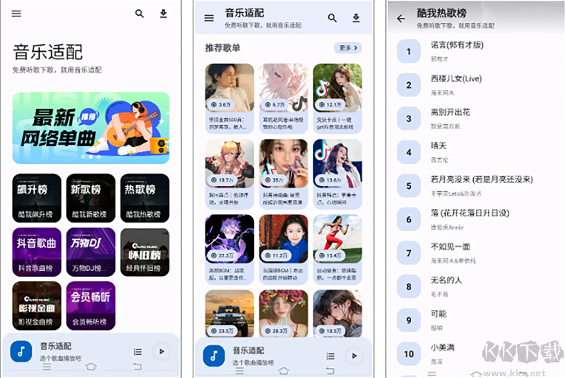 2.個(gè)性化推薦:音樂適配APP根據(jù)用戶的聽歌習(xí)慣和喜好,智能推薦相似的歌曲和歌單,讓每一位用戶都能發(fā)現(xiàn)更多心儀的音樂。