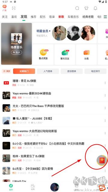 打開軟件,在發(fā)現(xiàn)界面,為你推薦近期熱門歌曲,在這里你可以分類查找,排行榜,專輯等內(nèi)容的呦·