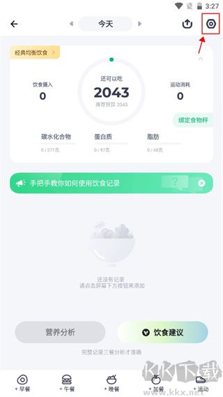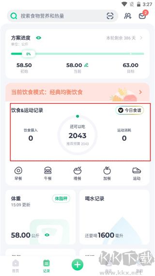 1、在記錄界面點(diǎn)擊今日食譜記錄;