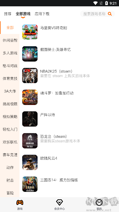 支持Steam上的游戲,讓你可以暢玩Steam平臺(tái)上的各種游戲。