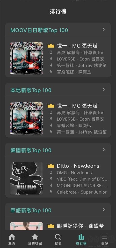 4、提供香港最強(qiáng)廣東歌庫,集合最熱廣東、K-Pop、華語、歐美、J-Pop 音樂,24 bit 音質(zhì)歌曲及錄音室原音母帶日日更新,指尖一按隨時(shí)串流及下載你的至愛音樂