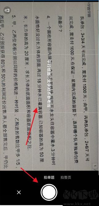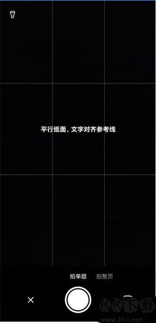 3、用手機(jī)攝像頭對(duì)準(zhǔn)題目使參考線平行于紙面文字,點(diǎn)擊拍攝按鈕。
