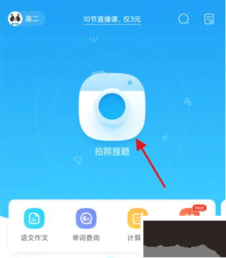 1、在首頁(yè)點(diǎn)擊上方的拍照搜題按鈕。