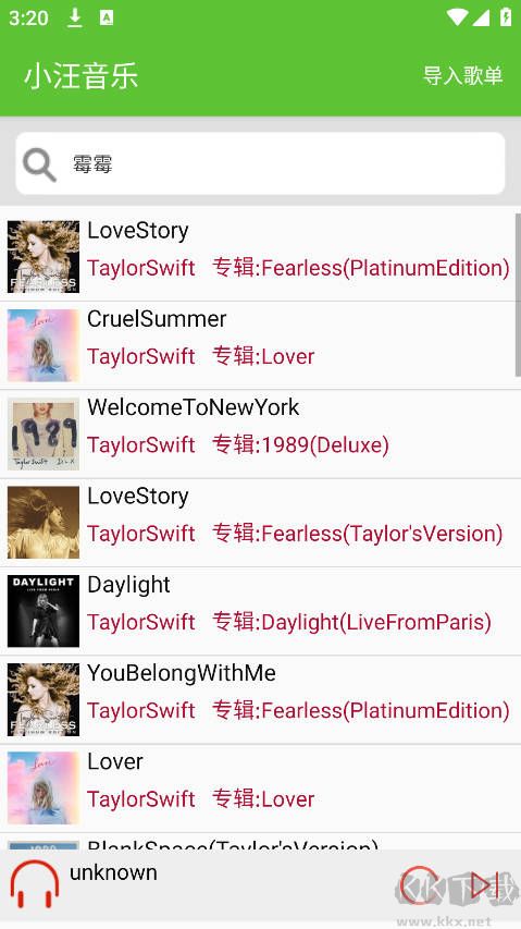 1、小汪音樂(lè)支持在線聽(tīng),右上角可導(dǎo)入其他音樂(lè)平臺(tái)的歌單。