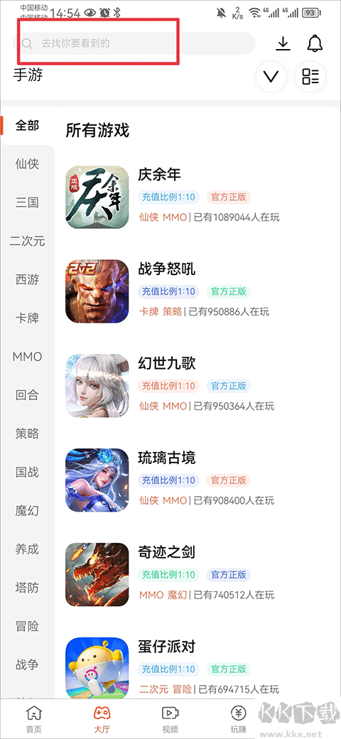 1、打開app,在大廳中選擇或搜索喜歡的游戲