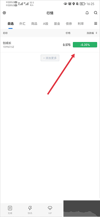 4、然后返回到行情界面后就可以實時查看該股票的漲跌幅情況了