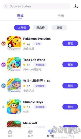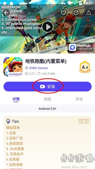 3、小編這里以地鐵跑酷為例,在此界面中直接點(diǎn)擊安裝即可下載游戲。