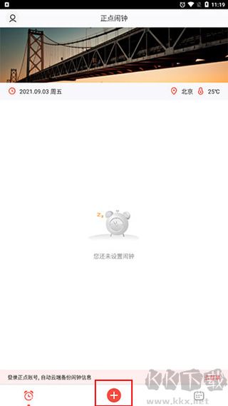 1、下載正點鬧鐘手機版,安裝后打開,點擊底部下方的加號按鈕開始添加鬧鐘。