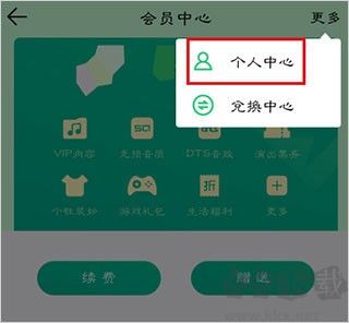 2、進(jìn)入會(huì)員中心后,點(diǎn)擊頁(yè)面右上角的【更多】,選擇【個(gè)人中心】;