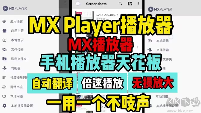 MX播放器應(yīng)該是安卓最優(yōu)秀的媒體播放應(yīng)用了,它以超強(qiáng)的解碼能力與兼容性聞名,并且對(duì)字幕的支持更堪稱一絕,兼容特效字幕,同時(shí)支持在線字幕匹配(未測(cè)試,不知道好不好用)擁有多款主題、同時(shí)還可以作為音樂(lè)播放器。