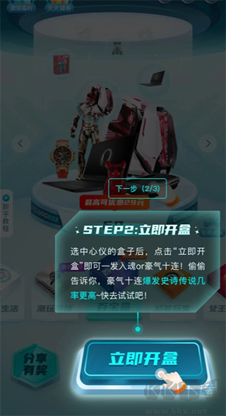 3、選中一款心儀的盲盒,點(diǎn)擊“立即開盒”即可進(jìn)行抽取;