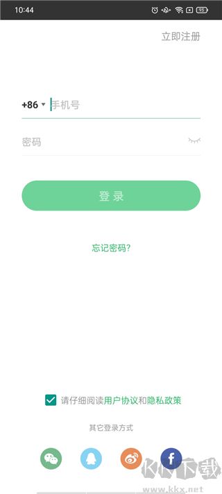 2、用戶可以通過輸入手機(jī)號和密碼登錄,也可以通過微信賬號、QQ、微博、Facebook賬號進(jìn)行登錄。