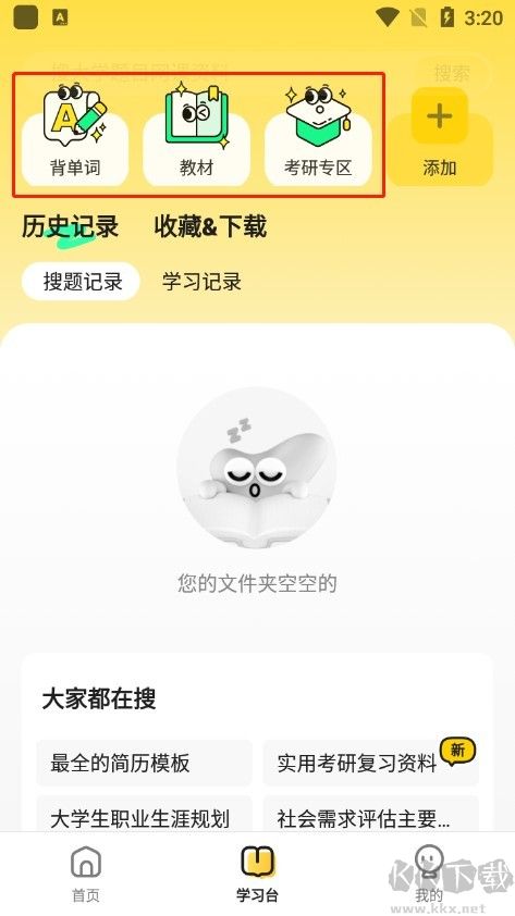 4、在學習臺頁面,還有背單詞、教材、記憶考研專區(qū)功能;