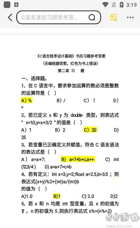 3、用戶可以隨機點進一個文檔,里面會有很多的試題;