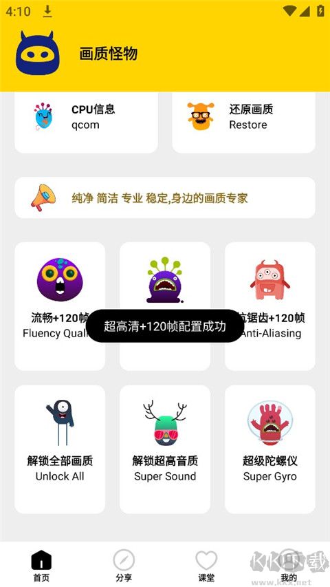畫質(zhì)怪物app手機版是一款專為廣大的和平精英玩家推出的手機畫質(zhì)、幀數(shù)解鎖軟件。這款軟件有著超級強大的功能,用戶能夠快速上手,實用起來超級方便,夠直接打開或者是使用游戲設(shè)置中的極致畫質(zhì)解鎖、超高幀率功能,有喜歡玩和平精英的小伙伴可以來本站下載該軟件,它能夠讓你體驗更流暢的游戲。