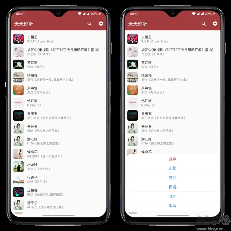 天天悅聽(tīng)是一款擁有海量音樂(lè)資源的播放器,國(guó)內(nèi)外的各種類(lèi)型的音樂(lè)資源都有,軟件本身占用空間小,運(yùn)行流暢穩(wěn)定,而且也沒(méi)有任何廣告、界面干凈整潔,軟件的音樂(lè)內(nèi)容也是非常全面,主流的酷G音樂(lè)、WY云音樂(lè)、Q樂(lè)等音樂(lè)平臺(tái)的歌曲全部都有,軟件本身也會(huì)根據(jù)你的聽(tīng)歌習(xí)慣,給你匹配你喜歡的音樂(lè)。功能上也是非常全面,還可以免費(fèi)下載全網(wǎng)歌曲,支持不同品質(zhì)的音樂(lè),包括標(biāo)準(zhǔn)和無(wú)損。