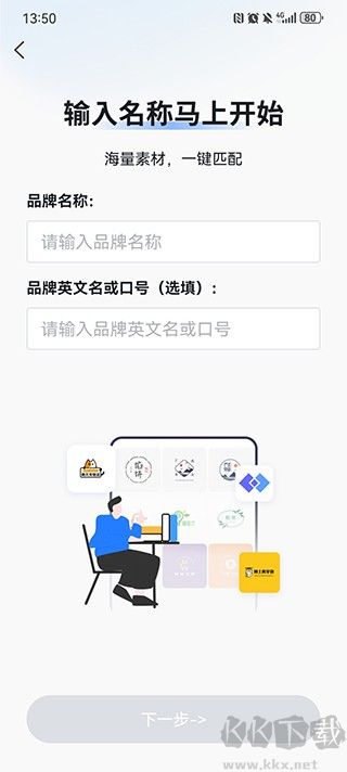 之后用戶需要輸入自己確定的品牌名稱,還可以選擇輸入英文名或者口號,填完之后點擊下一步即可。
