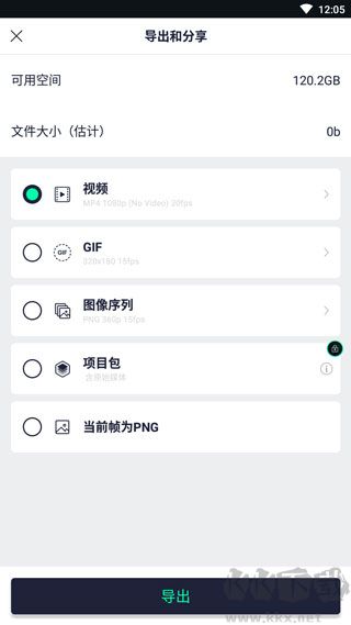 6、制作完成后,點(diǎn)擊屏幕右上方導(dǎo)出按鈕,你可以導(dǎo)出文件的類(lèi)型,然后分享它。