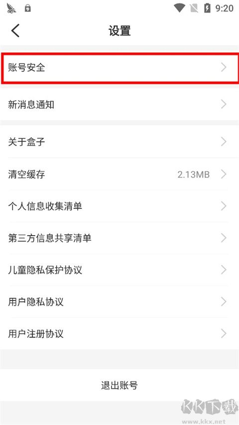 3、再點(diǎn)擊“賬號安全”;