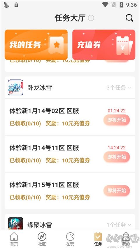 但是,有沒有什么辦法能夠在這個基礎(chǔ)上繼續(xù)削減玩家的開銷呢?答案是肯定的!打開996盒子后可以看到首頁里有一個任務(wù)大廳,系統(tǒng)會定時發(fā)送來自不同的《傳奇》品類游戲的任務(wù),比如說在某個新區(qū)上線后進(jìn)入游戲體驗(yàn)指定的時間,同時完成等級要求,就可以獲得一定金額的充值券獎勵。