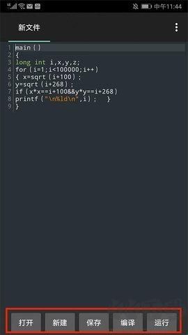 5、點擊編譯,編輯成功后點擊即可運行,也可以在手機根目錄創(chuàng)建一個專門的文件夾用于存放C/C++程序,方便以后直接打開,重要代碼寫完請記得保存,以上就是c4droid的用法了。