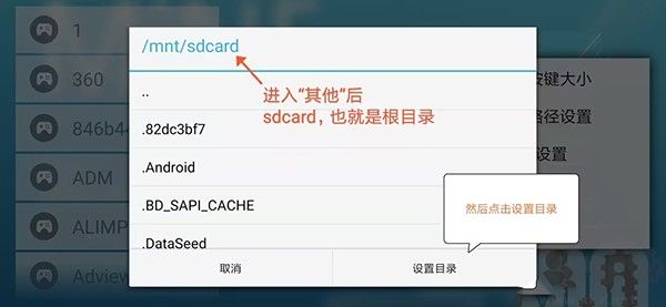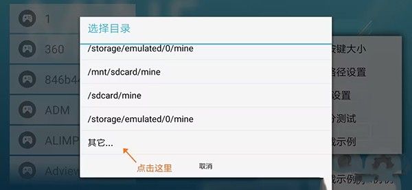 會(huì)有一個(gè)“其他”點(diǎn)擊它,就會(huì)跳轉(zhuǎn)到根目錄了,再點(diǎn)擊下方的“設(shè)置目錄”就可以把模擬器的默認(rèn)路徑設(shè)置到手機(jī)的根目錄了