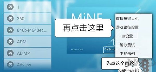 1、mine的運(yùn)行方法,其實(shí)跟Jh的運(yùn)行方法一模一樣,只是要自己手動(dòng)設(shè)置模擬器查找游戲的路徑和文件夾方面的細(xì)節(jié),模擬器下載安裝之后,打開模擬器,然后按照下圖的來點(diǎn)擊