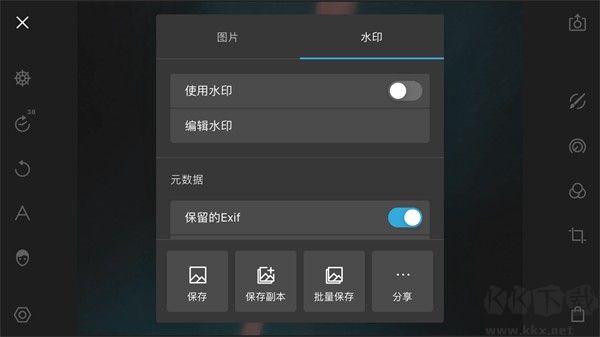 通過導(dǎo)出照片功能我們可以對導(dǎo)出的照片進(jìn)行設(shè)置,包括圖片、水印兩個大項(xiàng)。