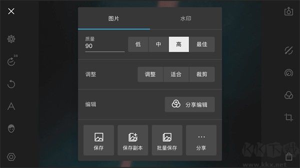 質(zhì)量:polarr修圖在導(dǎo)出時支持將質(zhì)量設(shè)置為低、中、高、最佳四個檔次,輸出質(zhì)量越高圖像的整體質(zhì)量(清晰度、色彩、細(xì)節(jié)等)就會越高,但圖片體積也會越大。