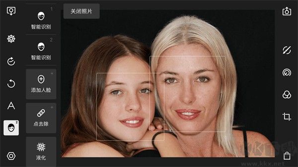 polarr修圖人像面板下,一共包括了智能識別、添加人臉、點(diǎn)去除、液化四個大類。