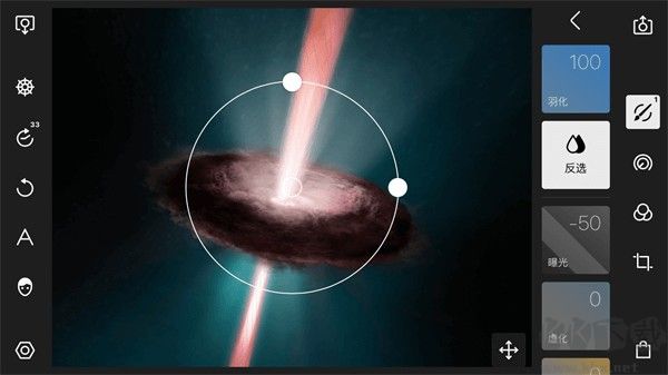 利用圓形調(diào)整,我們可以選擇性的調(diào)整部分畫面,從而實(shí)現(xiàn)更加精細(xì)的調(diào)整。當(dāng)我們新建一個圓形調(diào)整之后,畫面中會出現(xiàn)一個圓圈,圓圈以外的部分表示受到我們調(diào)整參數(shù)的影響,圓圈以內(nèi)的部分表示不受我們調(diào)整參數(shù)的影響。