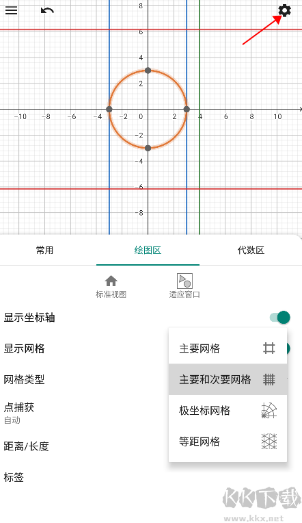 你可能還希望只顯示繪圖區(qū)并關閉其他視圖,只需要從導航中選擇突出顯示的視圖,你可以使用相應的按鈕再次顯示其他視圖(代數(shù)區(qū)、表格區(qū))。